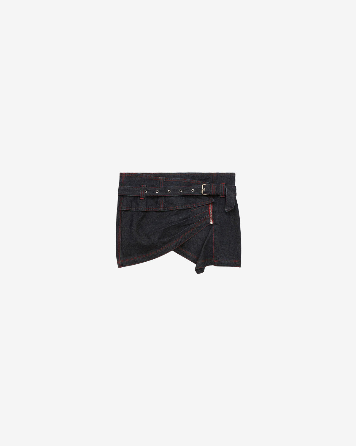 Draped denim contrasting topstitch mini skirt